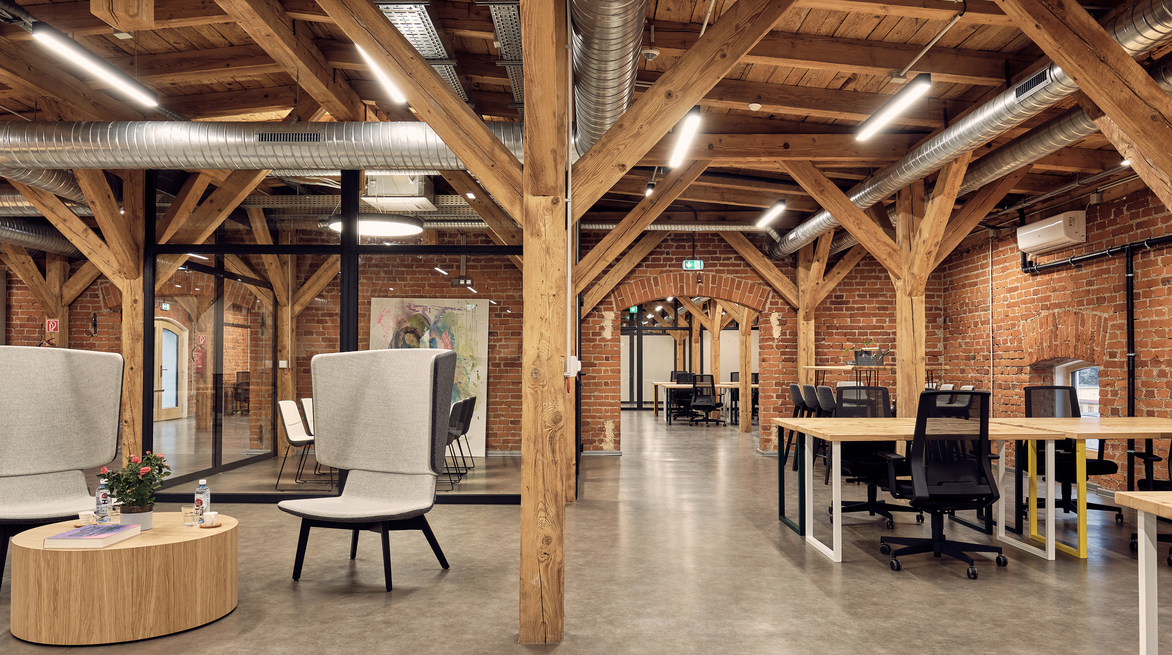 Rekonstruovaná národně kulturní památka, Sklad III. bývalé fabriky na kávoviny v Košicích, nyní září díky moderním svítidlům od Hygge lighting, která respektují její industriální minulost a přinášejí inovativní osvětlení do nově vzniklých obchodních a administrativních prostor. Naše profilová svítidla P65 zajišťují flexibilitu světelných řešení, zatímco kruhová B77 a prstencová B78 přidávají moderní design a příjemnou atmosféru. Tento osvětlovací koncept spojuje minulost s přítomností a dává historickým prostorám nový život.